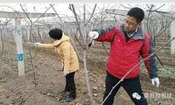 3、株行距要标准:全部推行大棚架,株行距按2×3米定植,每亩地栽植110株果树,雌雄株8:1配备。幼树整形修剪时,要重点推厂“单干双臂标准树形。