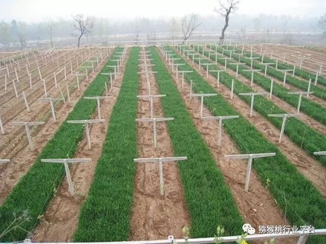 第1年可利用行间套种少量高秆作物,如玉米、高粱、油葵等,以起到对新栽苗的遮阴作用;第2、3年可套种中、低秆作物,如小麦、豆类、草莓、菜类等,行间还可种植三叶草等实行生草制栽培。实行生草制时给植株留出2m宽的营养带,保持覆草或清耕。施肥时在营养带内撒施农家肥、化肥,生草带上撒施化肥。