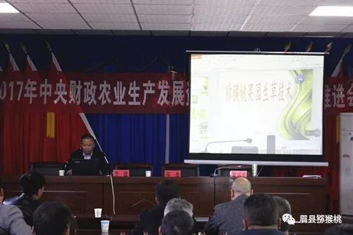 会上,县果业局党支部书记苟杰就今年在眉县实施的“2017年中央财政支持猕猴桃产业发展项目”基本情况作了介绍,并就本年度项目具体实施内容、项目实施计划、项目实施预期效果和当前需要开展的各项工作做了具体安排。随后,梁周平就项目实施提出要求,他指出,猕猴桃产业项目能争取到汤峪镇不容易,希望项目村村组干部及果农能把握机会、立即行动,通过项目实施全面提升果园果品品质,做出特色,做出亮点。最后,县果业局业务股股长李建就项目中果园生草、秸秆覆盖等关键技术做了全面系统的培训。